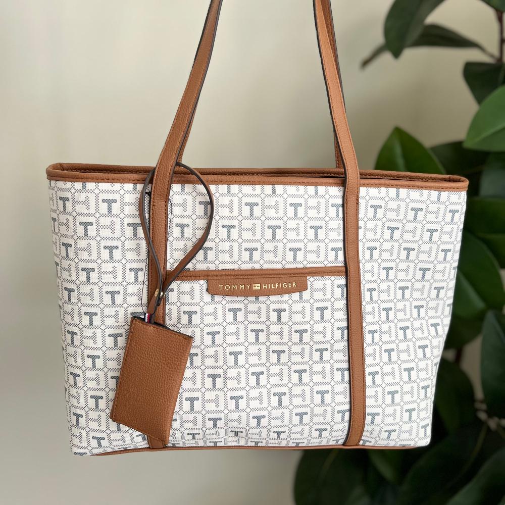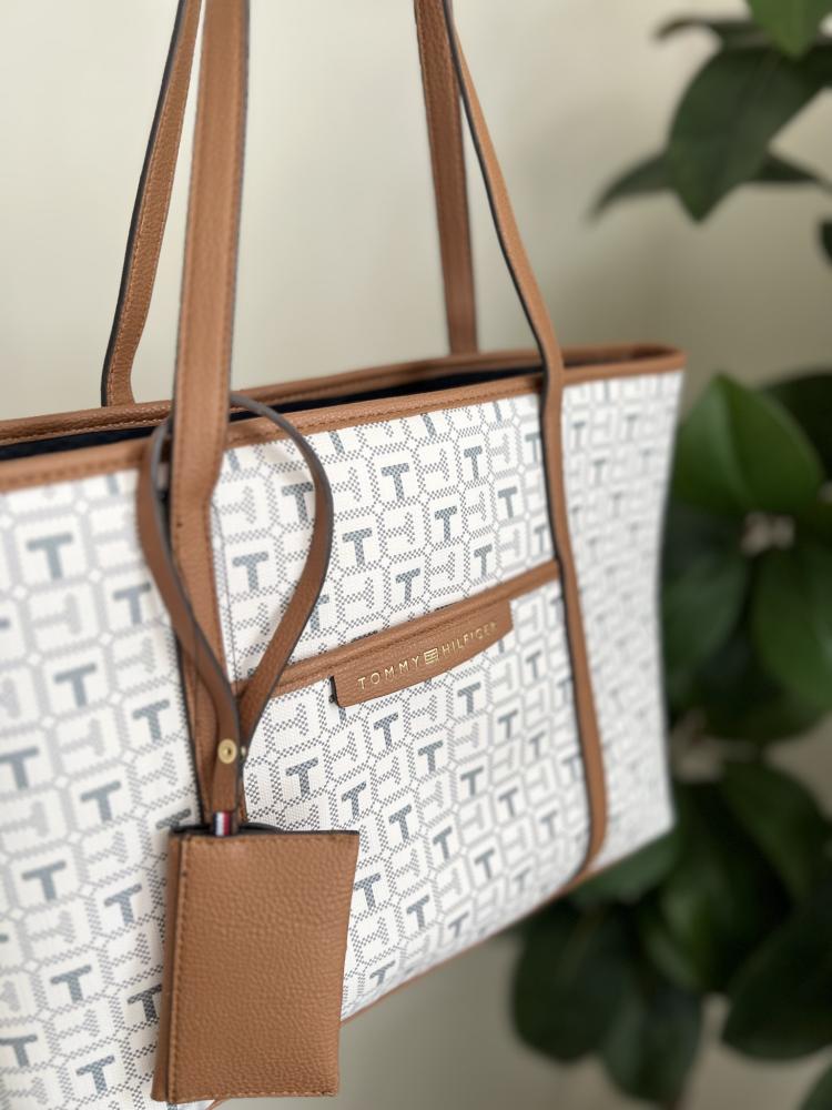 شنطو تومي هلفقر للكتف باللون البيج الأنيق
