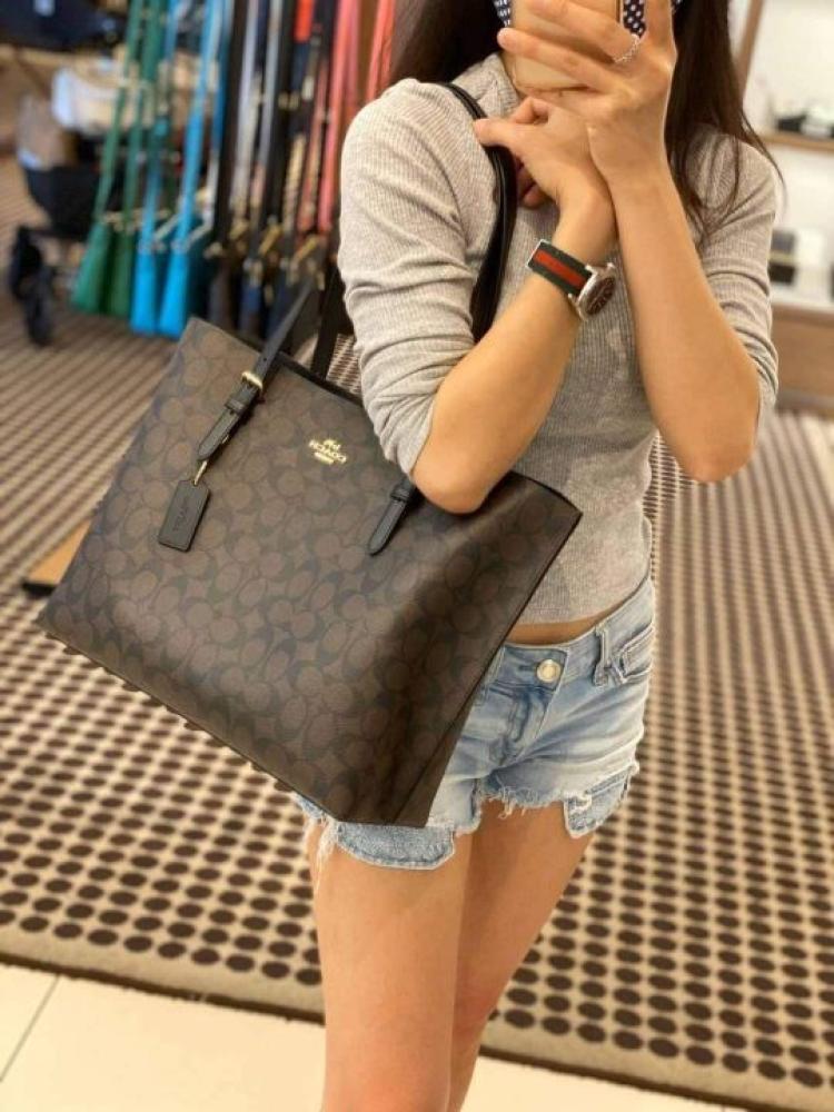شنطة مايكل كورس jet set قماشية سكري وبني