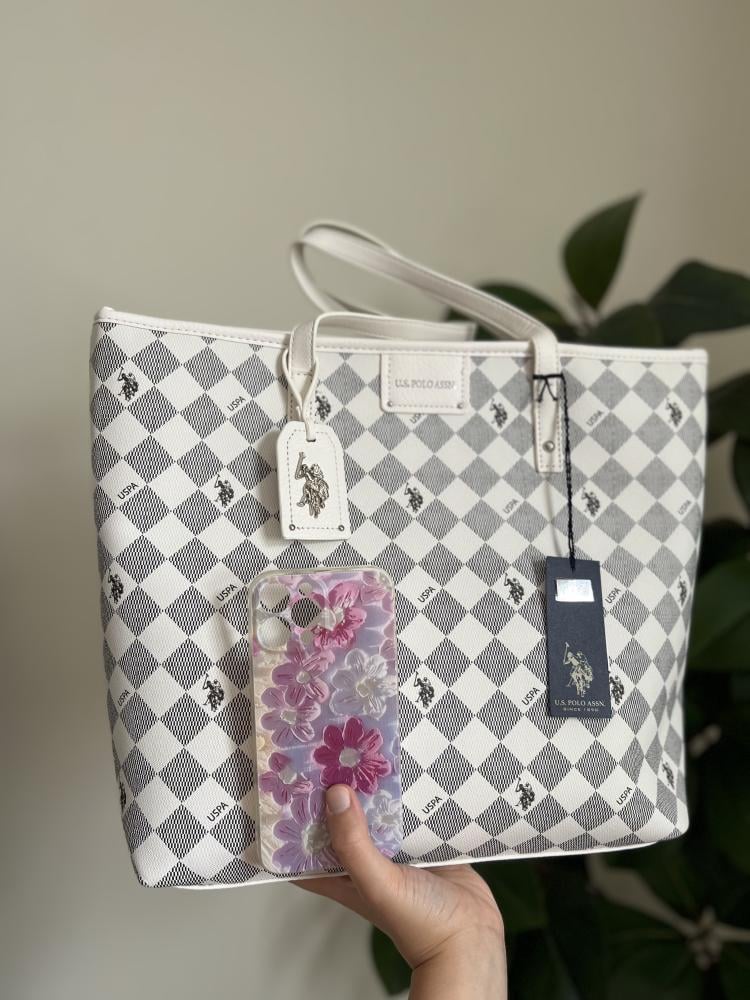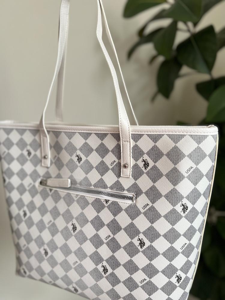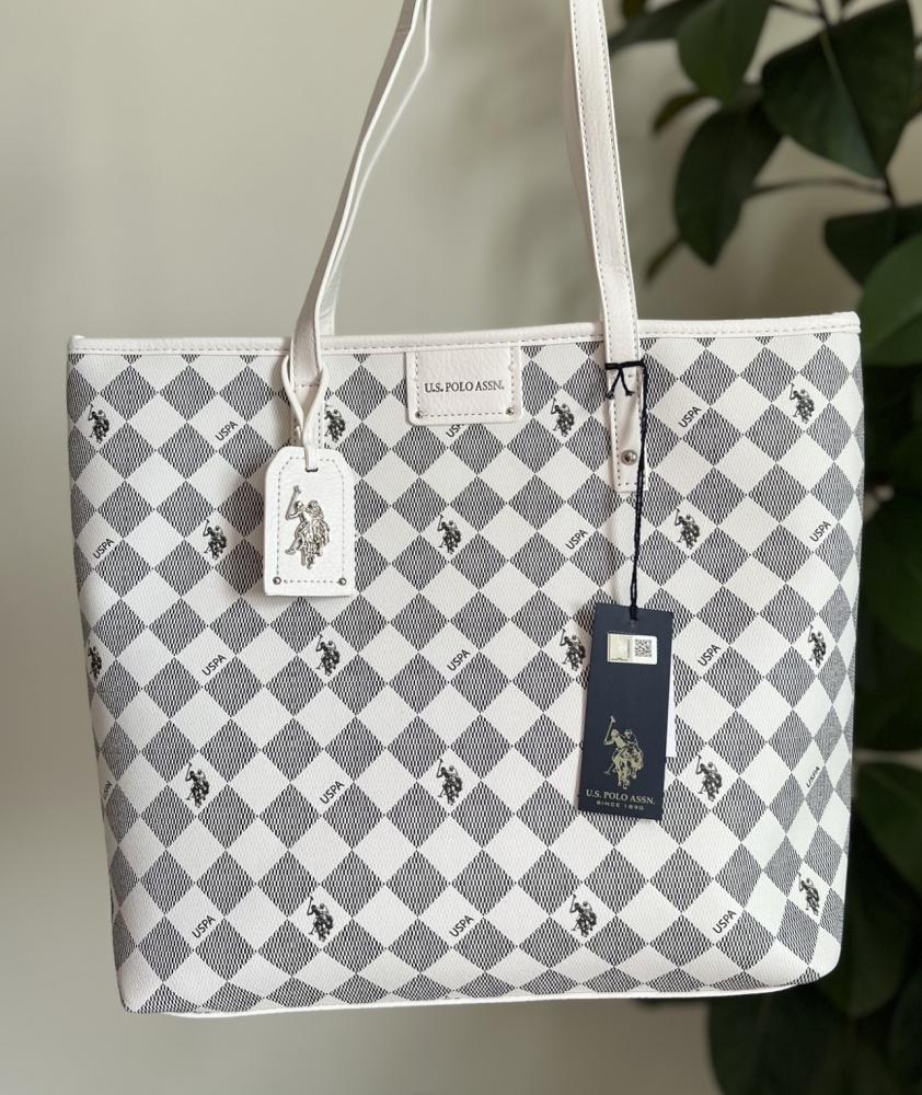 شنطة يو اس بولو للكتف ابيض واسود يو اس بولو
